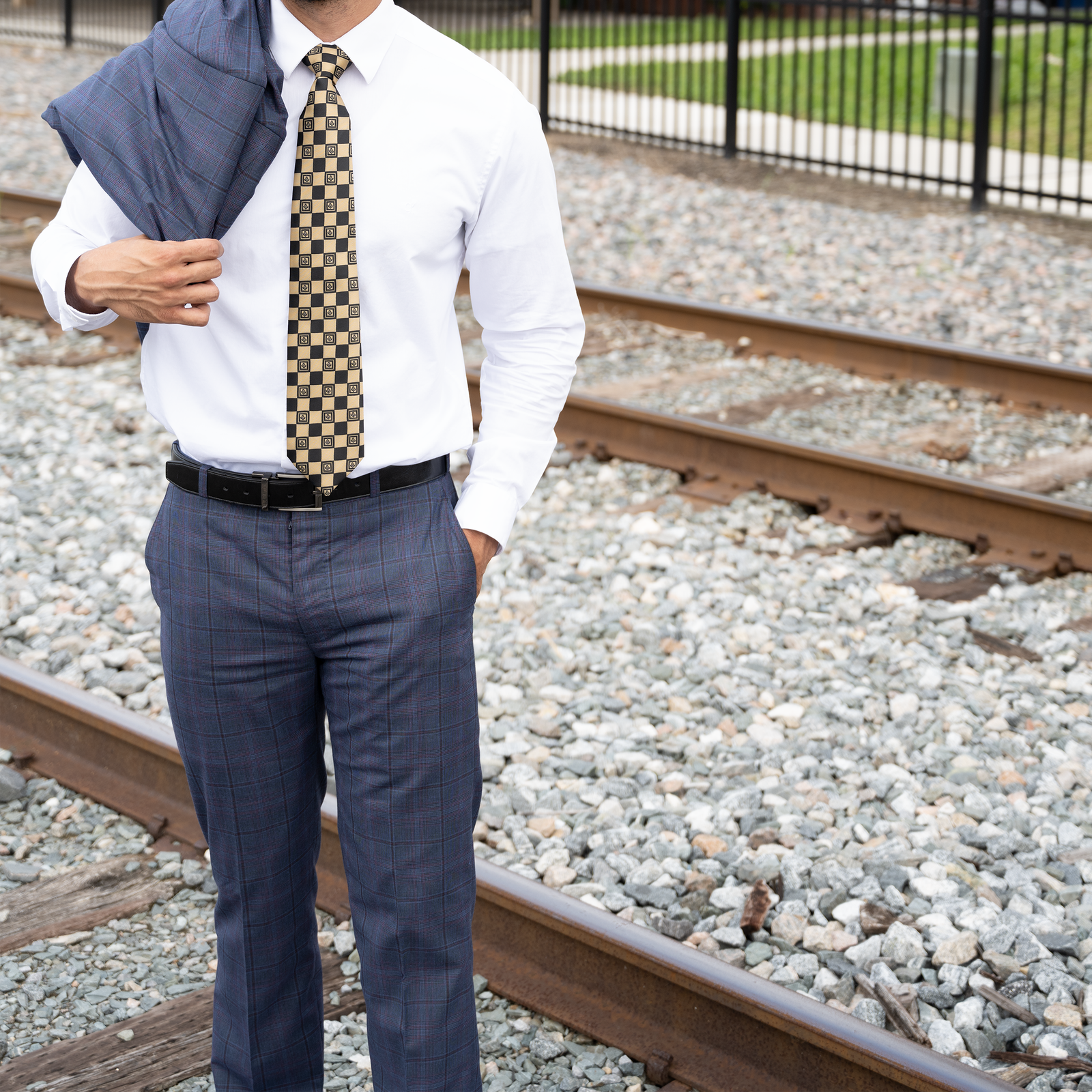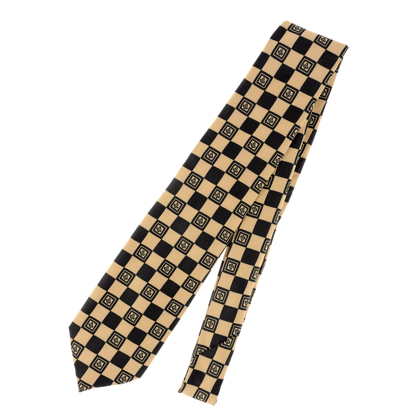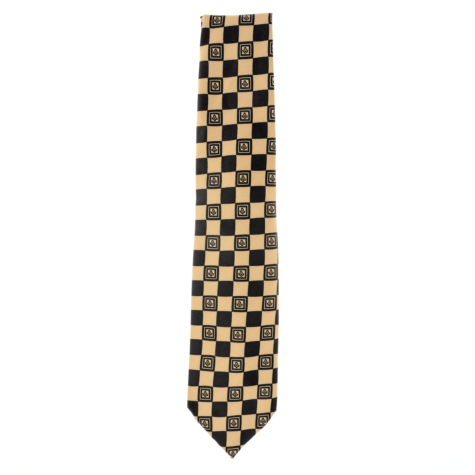 This sophisticated Masonic tie features alternating black and gold squares, creating a refined geometric pattern. Crafted from premium woven nylon, this tie blends symbolism with style, making it ideal for lodge meetings, ceremonies, and formal Masonic occasions.