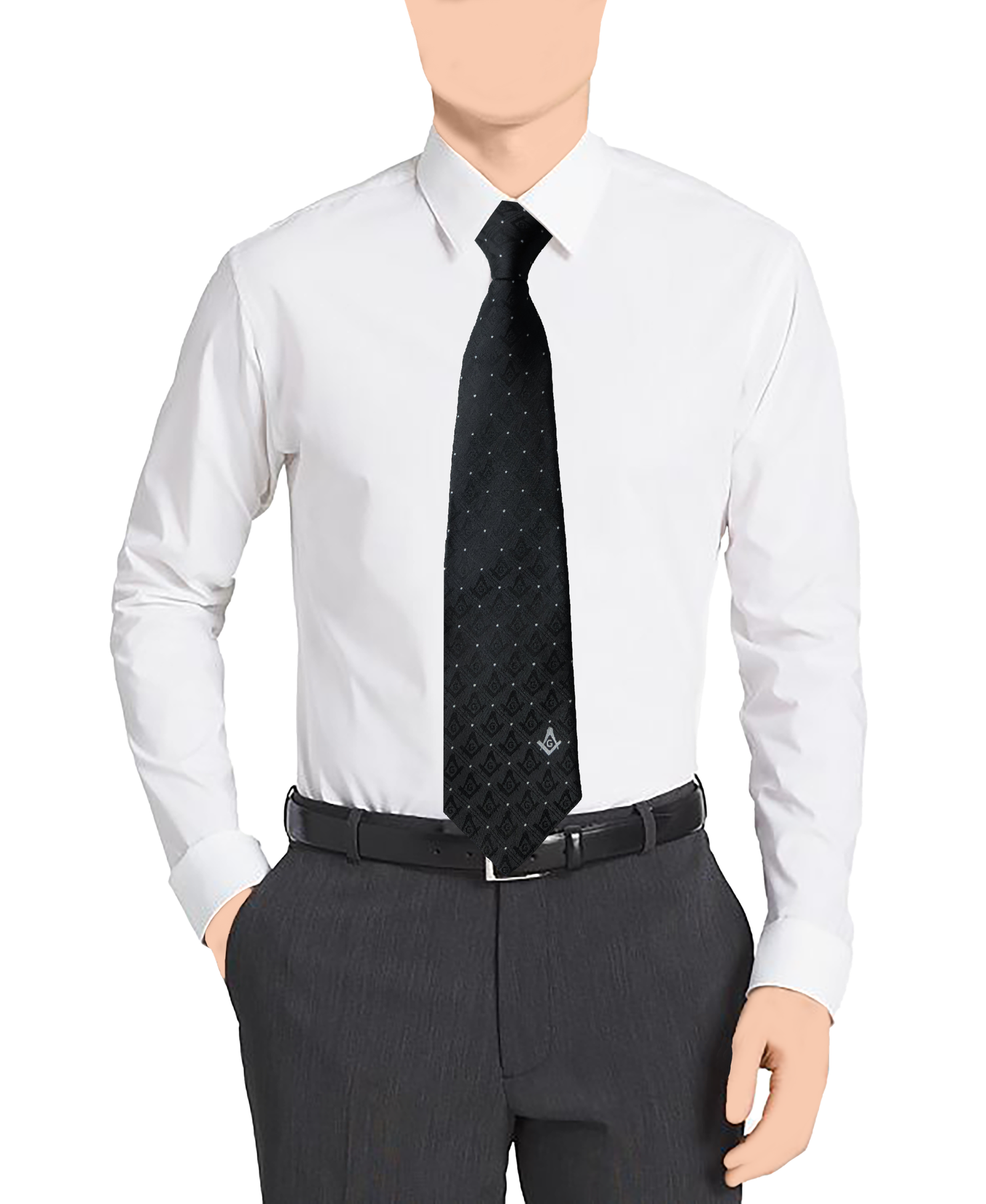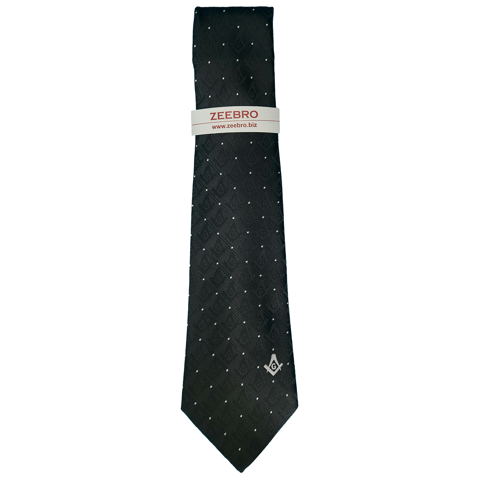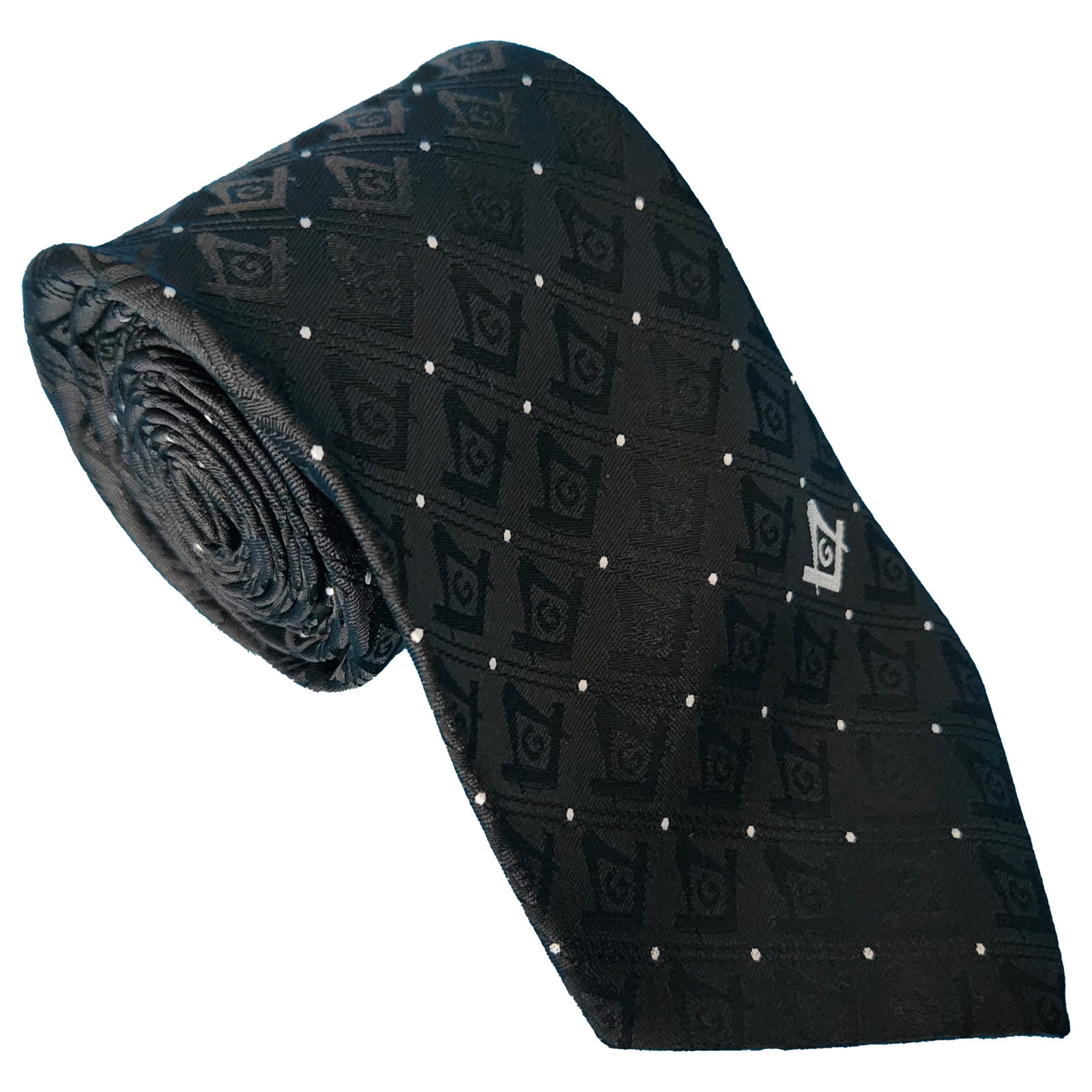 This black tie with white dots and subtly displayed Square and Compass emblem is a proclamation of Masonic principles for perceptive eyes.