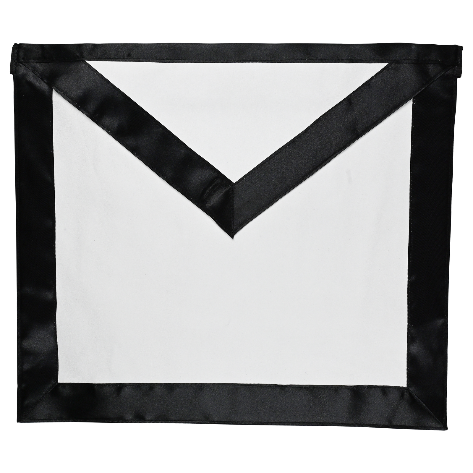 This white lambskin funeral apron features a smooth flap and body with no embroidery, emphasizing the symbolic purity of the lambskin. The black satin ribbon border and flap trim serve as the badge of mourning, reflecting the solemnity of the Craft’s funeral rites.