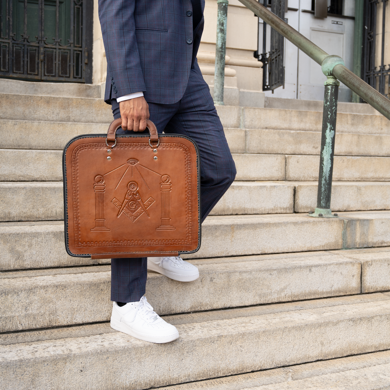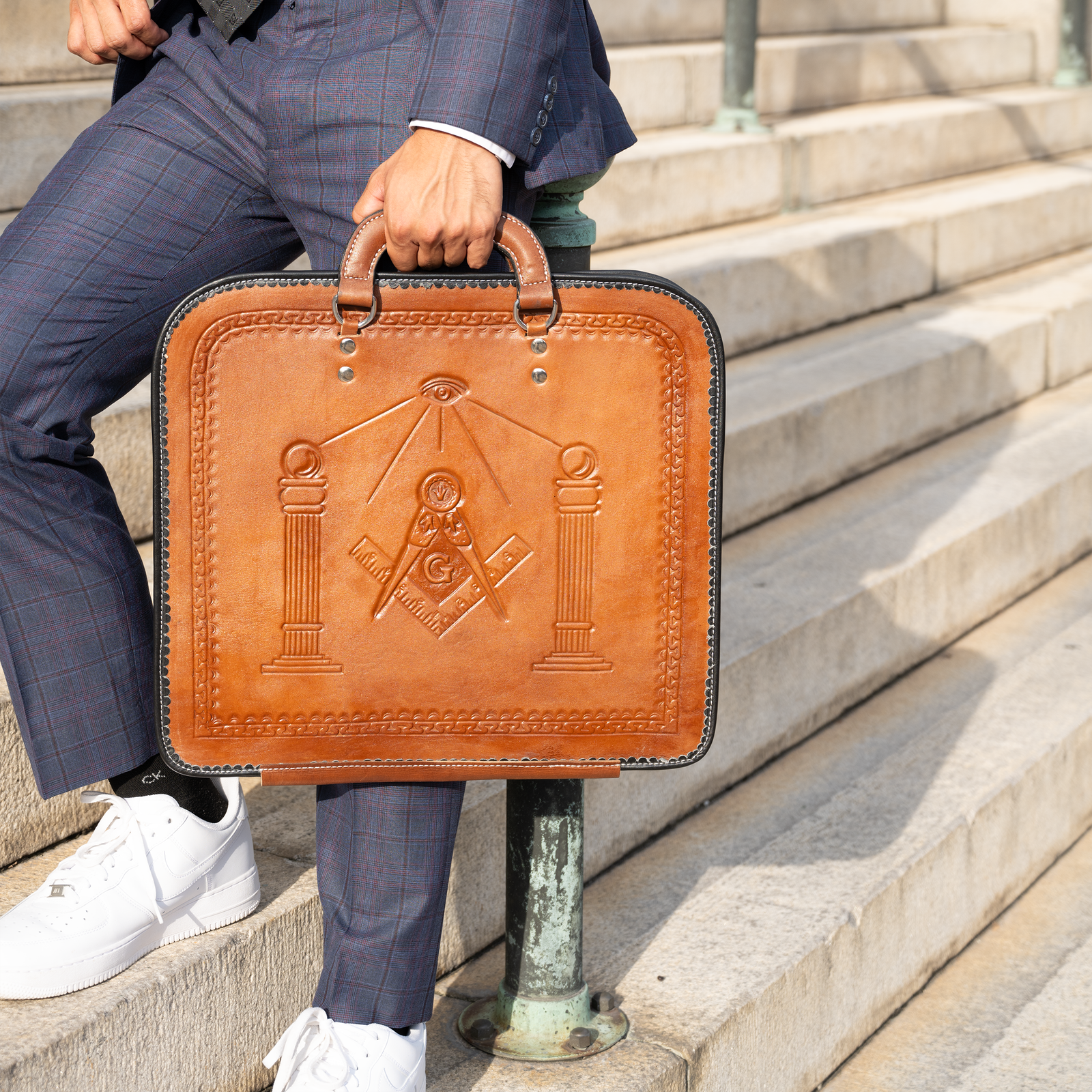 Beyond a mere storage solution, this hand-carved apron case is a timeless artifact that embodies Masonic virtues and the enduring principles of the Craft. Designed to safeguard your apron and regalia with elegance, it is a symbol of dedication, service, and enlightenment—crafted to be cherished for generations. Made from the finest full-grain leather and adorned with intricate Masonic symbolism, this case is a tribute to the journey of every Mason.