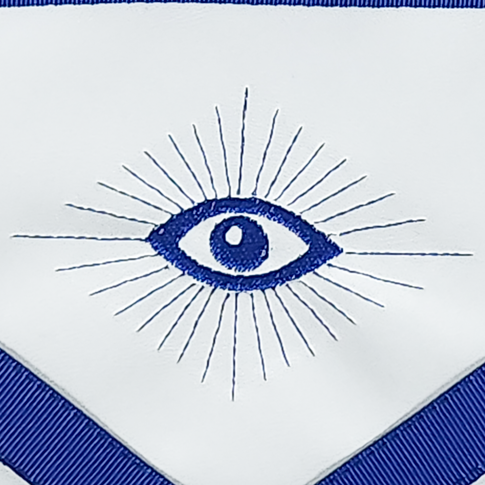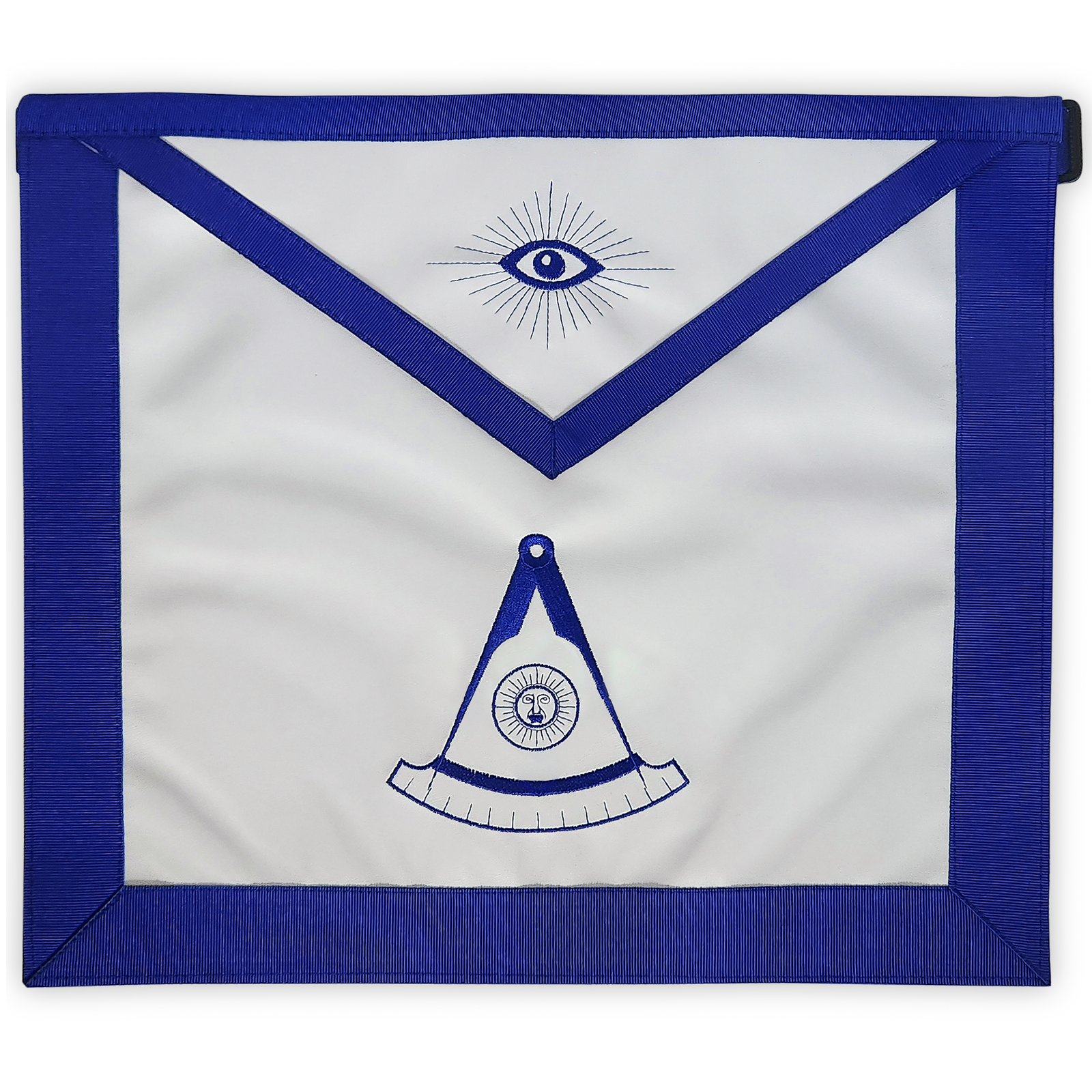 Enhance your Masonic regalia with the Past Master Blue Lodge Apron, featuring intricate machine embroidery of the Past Master symbol, Square and Compass, and the All-Seeing Eye. Designed to reflect both elegance and tradition, this apron is available for purchase, with customization options made to order.