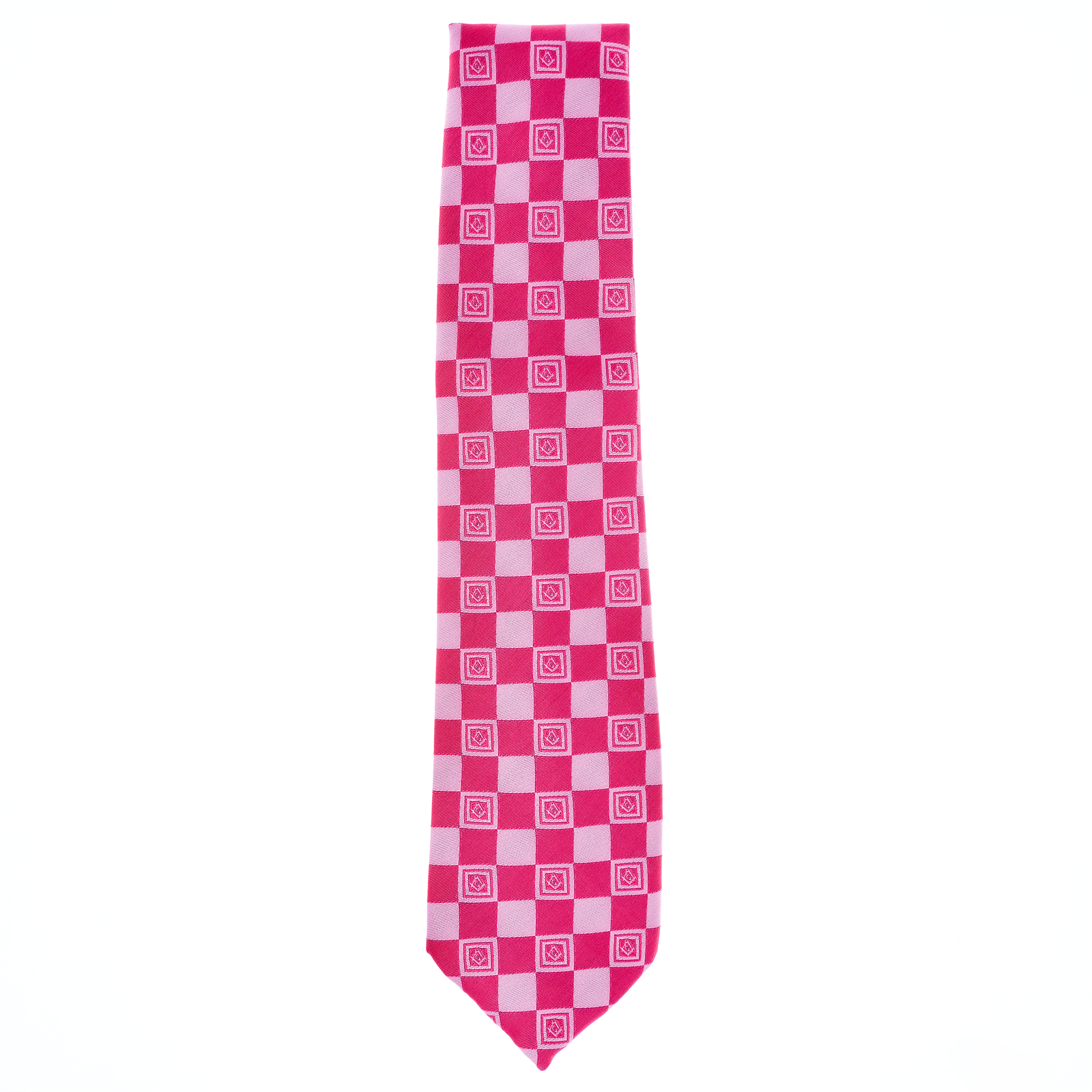 Pink Masonic Tie – Geometric Square Pattern with Square & Compass Design