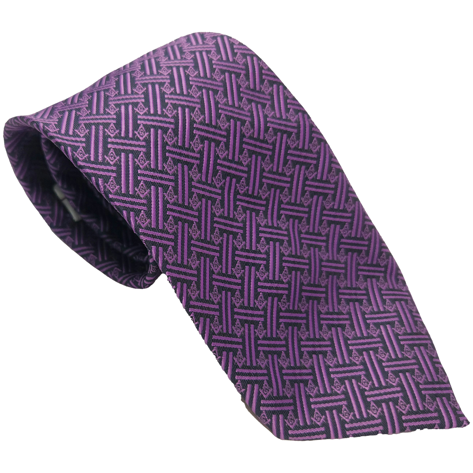 - Symbolism: Square & Compass woven in tonal purple thread within each geometric cell, visible on close inspection and when the weave catches the light.